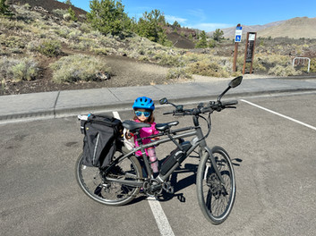 Today we went back and did a bike ride through Craters of the Moon. We were planning to do a one way hike and rather than trying to hitchhike back, we biked to the other end to start the hike and hike back to the truck at the opposite end. It worked well. It was a great place to bike, especially with an e-bike. Bruce is still holding out with his old manual pedal bike. At least he doesn't have to tow Jordan behind him anymore.