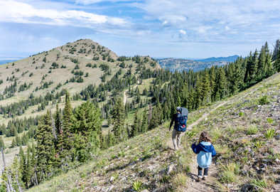 The next morning, we headed up the chairlift first thing to hike along the mountain ridge. Jordan liked riding in the backpack again with the pillow for extra baby comfort. The views were amazing from a few steps into the hike. We saw a baby deer and mommy deer.