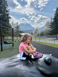 We stopped through Lake Louise on our next move. We went up the gondola again and then got some food at the bottom. The waitress placed the BBQ platter for 2 in front of Jordan, of course. And as always, another stop at the playground.